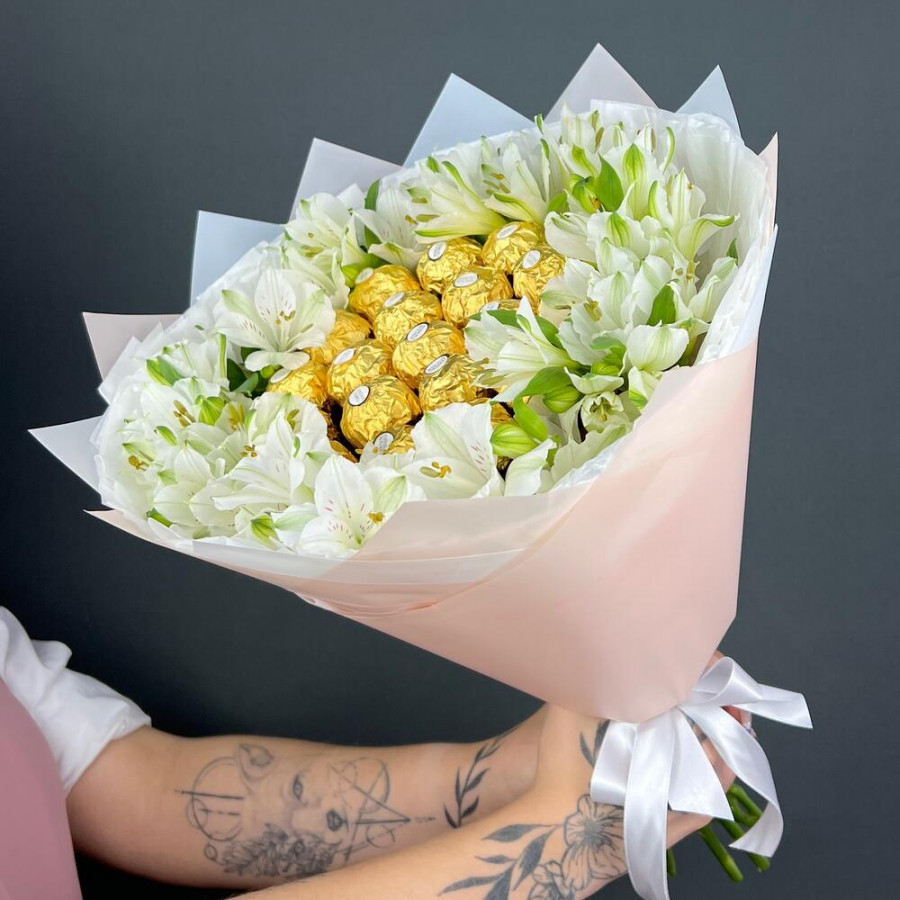 Букет из конфет Ferrero Rocher и и альстромерии в Невинномысске